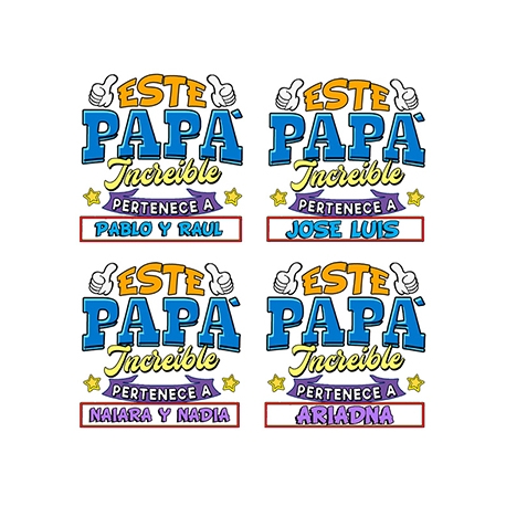 Cojín con relleno personalizable con nombre ejemplo Este papá increíble pertenece a Pablo y Raúl