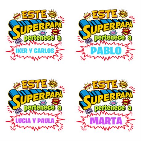 Cojín con relleno personalizable con nombre ejemplo Este Super papá pertenece a Lucia y Paula