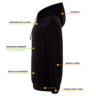 • Cada sudadera se personaliza e imprime individualmente bajo pedido.