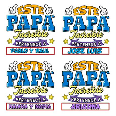 Taza personalizable con nombre ejemplo Este papá increíble pertenece a Pablo y Raúl